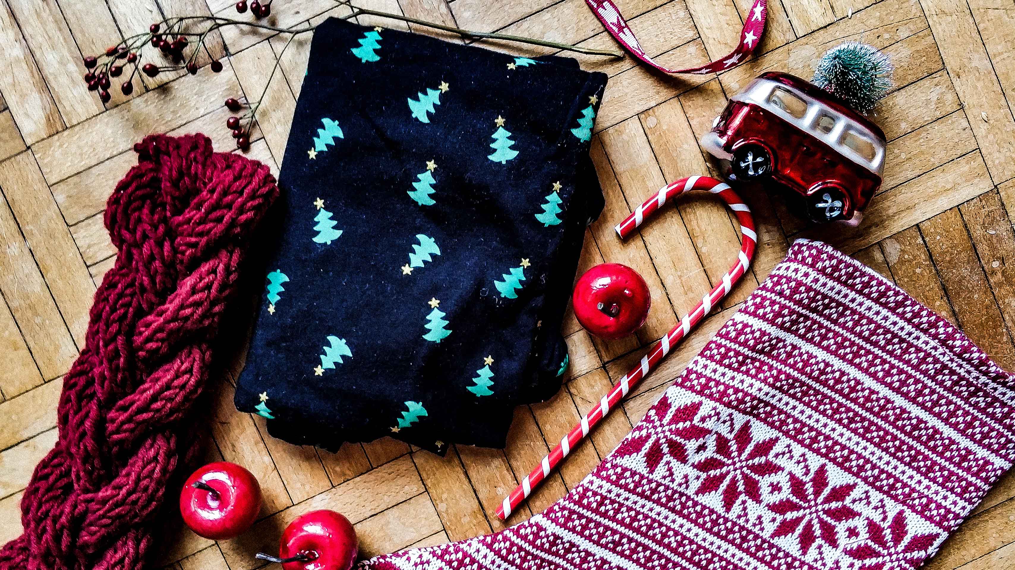 Po prostu ubierz się świątecznie. To nie musi być nie wiadomo co. Ja mam na ten okres różne świąteczne elementy garderoby i dodatki – skarpetki, koszulki, kolczyki, naszyjniki i broszki. Lubię sobie zerkać na malutkie nadrukowane na t-shirt choineczki, renifery na skarpetkach albo broszkę ze Świętym Mikołajem.